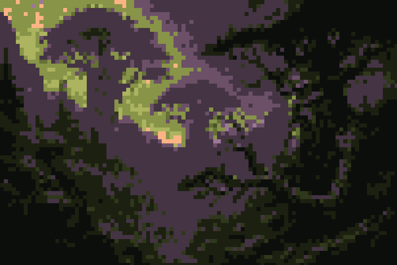 Warm light gleams against your helmet’s crest. You drag yourself from the black, knotted hole in the tree canopy.