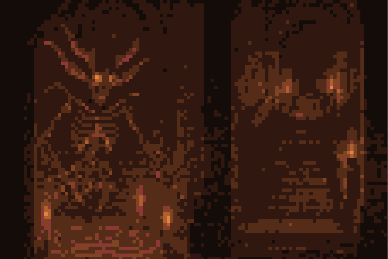| The Belfrey The heavy bronze bell has snapped from its line. It now lies embedded in the splintered, uneven floorboard. | Octopus Atrium This central garden is full of brittle shrub wood and small but deep pools. | The Roaming Room This room roams the halls on a hundred marble feet, like a centipede. It seems docile. You may enter through it’s ‘face’. |