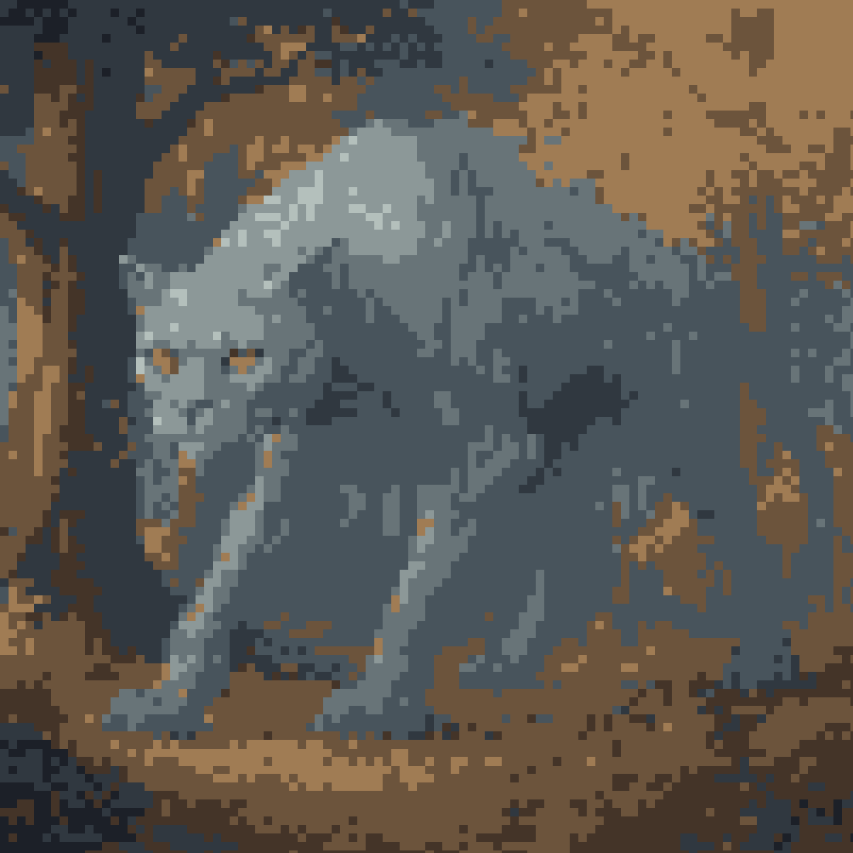“No ill. I mean you no ill, enormous hunter. I am (or was) a Lady. I carry no edge to lay into your thick fur. “Please, stay upon your bed of needles, and keep your long claws sheathed. “I’m not unlike you. Not in size; you would loom over me if you rose, and snap my bones with your gravity. But see, my hair is blue. Not unlike your coat, though yours is brighter. “Periwinkle Forest Cat, you seem at ease… “In this heavy wood, is there a cave? Or bough-shaded glade? A place you call your lair? “Have you cubs? One mother knows another.”